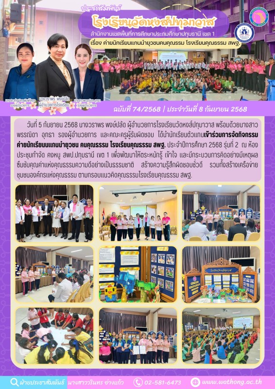 กิจกรรมค่ายนักเรียนแกนนำยุวชนคนคุณรรม โรงเรียนคุณธรรม สพฐ. ประจำปีการศึกษา 2568