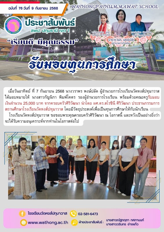 รับมอบทุนการศึกษา