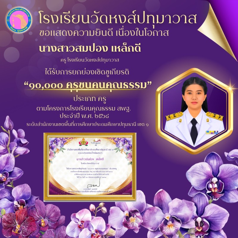 ขอแสดงความยินดีกับ ผู้บริหารสถานศึกษา และครู ที่ได้รับรางวัลกิจกรรมโรงเรียนคุณธรรม สพฐ. รางวัลนวัตกรรมสร้างสรรค์คนดีด้านการบริหารและด้านการเรียนการสอน กิจกรรมคุรุชนคนคุณธรรมสำหรับผู้บริหารและสำหรับครู ประจำปี พ.ศ. ๒๕๖๘