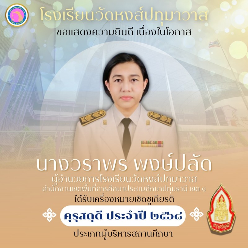 ขอแสดงความยินดีผอ.วราพร พงษ์ปลัด เนื่องในโอกาสได้รับเครื่องหมายเชิดชูเกียรติ