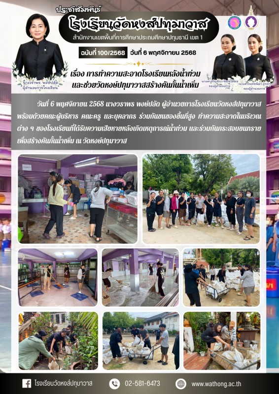 กิจกรรมทำความสะอาดโรงเรียนหลังน้ำท่วม และช่วยวัดหงษ์ปทุมาวาสสร้างคันกั้นน้ำเพิ่ม