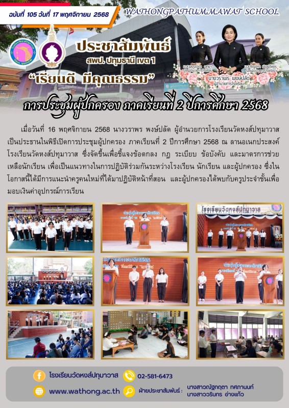 การประชุมผู้ปกครอง ภาคเรียนที่ 2 ปีการศึกษา 2568