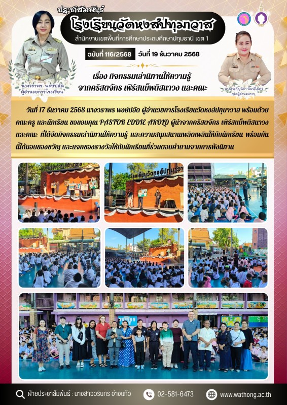 กิจกรรมเล่านิทานให้ความรู้ จากคริสตจักร เฟิร์สแบ็พติสนาวง และคณะ