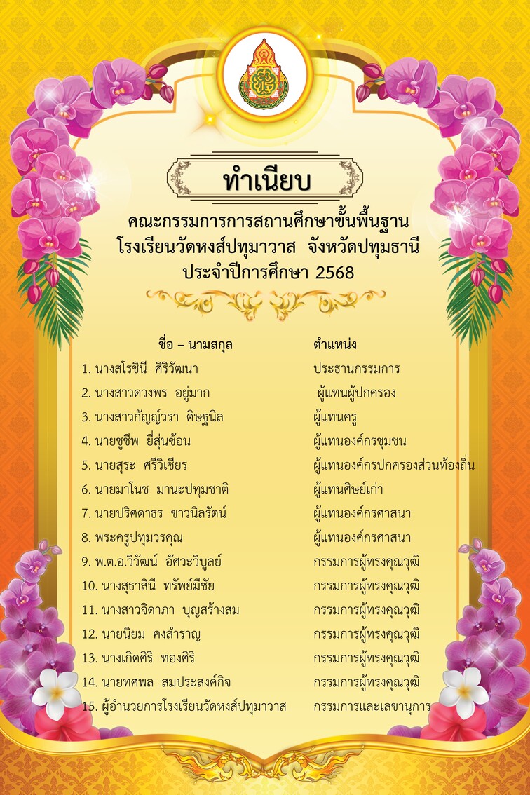 คณะกรรมการสถานศึกษาขั้นพื้นฐาน ประจำปีการศึกษา 2568