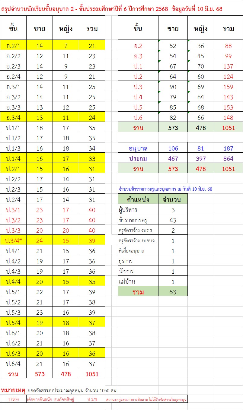 ข้อมูลนักเรียนภาคเรียนที่1 ปีการศึกษา 2568 วันที่ 10 มิ.ย. 2568